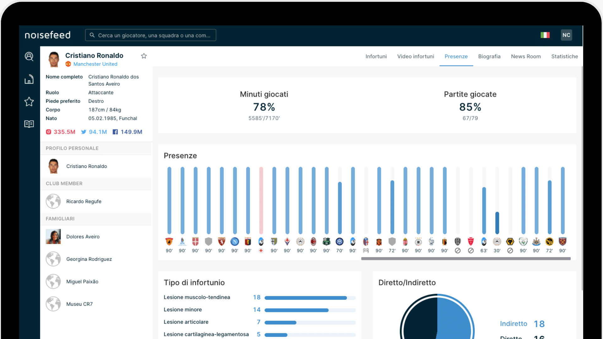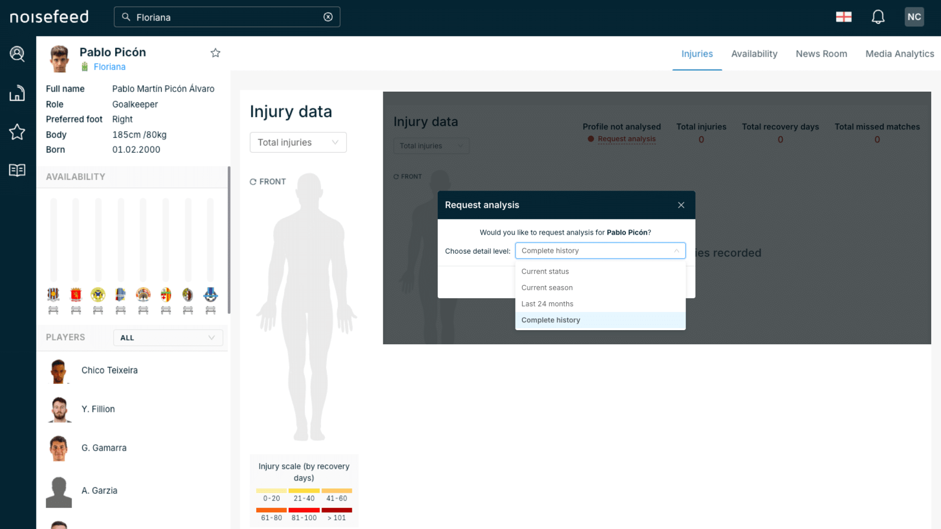 A solution designed for scouts, clubs, agencies, and analysts who require a complete and verified overview of a player’s physical condition and injury history.